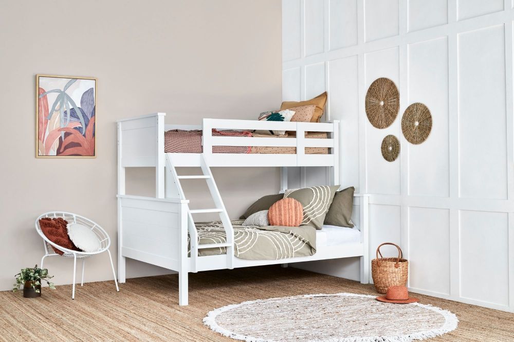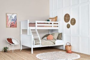 Clean, bright, and built for real family life — the Charlie White Bunk Bed saves floor space, sleeps two, and fits any Kiwi kids’ room with its smooth white finish and left/right configurable ladder.