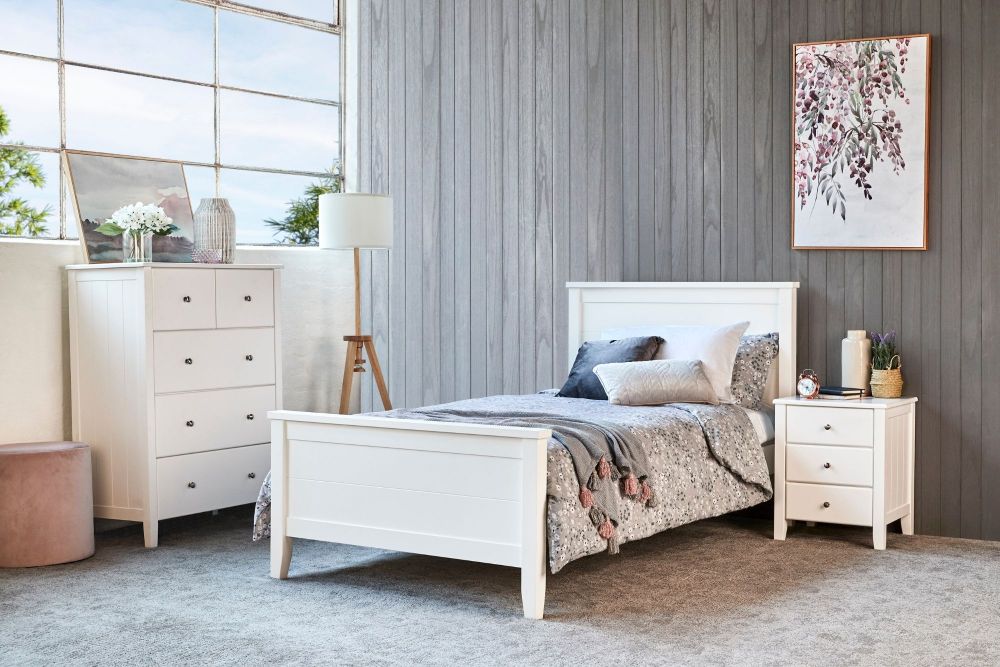 A fresh, fuss-free kids’ bed in crisp white. Charlie’s clean lines and smooth finish make it easy to style — add colour, keep it calm, your call. Matching storage and trundler options available.