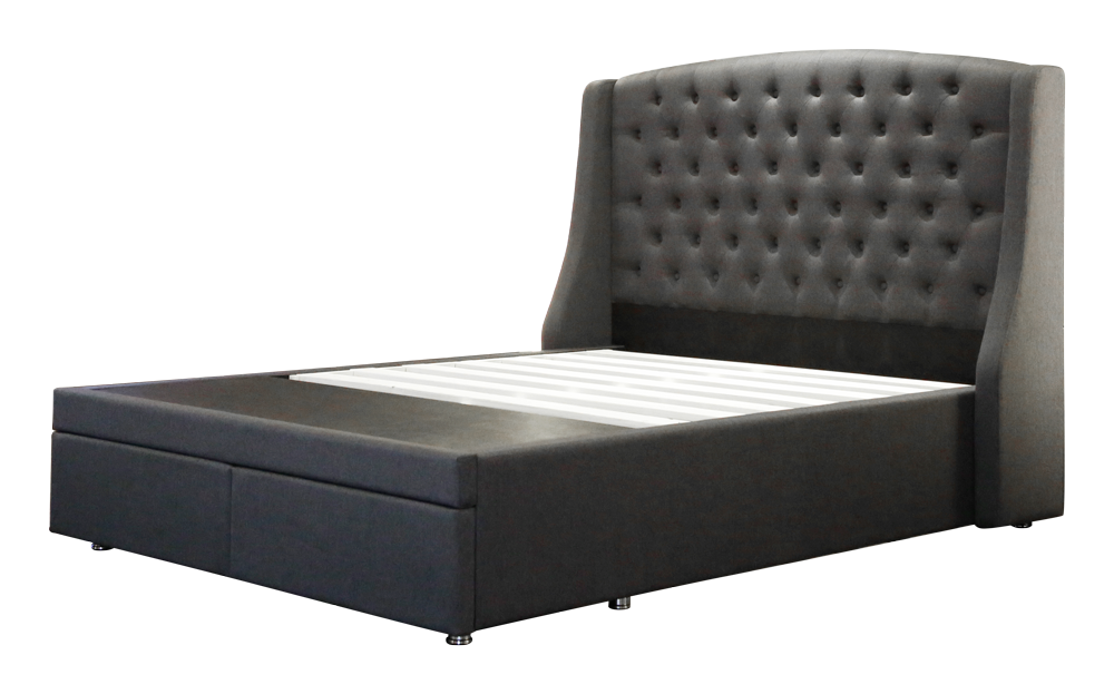 The easiest way to lift a bedroom? Go upholstered. Miramar gives you that instant, hotel style focal point with a classic padded, buttoned headboard and elegant side wings that frame the bed. At the foot, you get two large drawers for bedding and bits — the drawer unit arrives pre assembled on proper runners for a smooth glide and a tidy finish. The full bed still assembles easily at home, and the versatile charcoal fabric plays nicely with light or moody interiors.